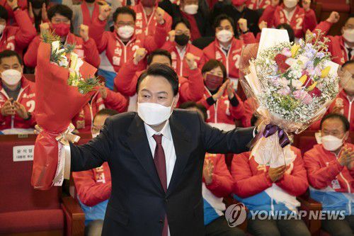 (서울=연합뉴스) 이준서 기자 = 9일 실시된 제20대 대통령 선거에서 국민의힘 윤석열 대선 후보의 당선이 확정됐다.