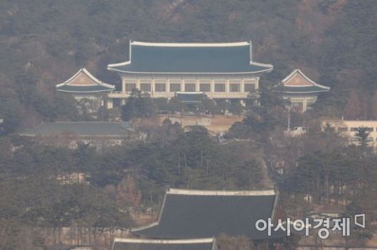대기 정체의 영향으로 초미세먼지 농도가 ‘나쁨’ 수준을 보인 26일 서울 청와대가 뿌옇다. /문호남 기자 munonam@ |