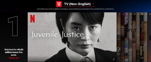 10일 넷플릭스가 공개한 지난주(2월 28일~3월 6일) 누적 시청시간 기준 작품 순위에 따르면 소년심판은 누적 시청시간 4593만시간으로 비(非)영어 TV쇼(드라마) 부문 1위에 올랐다.