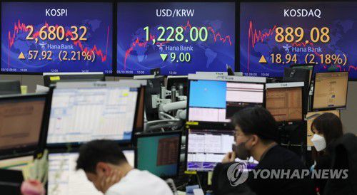 이날 코스피는 전 거래일보다 57.92포인트(2.21%) 오른 2,680.32에 거래를 마치며 4거래일 만에 반등했다.