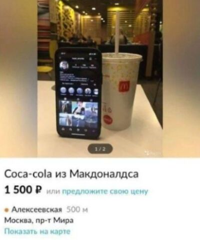 맥도날드 일회용 컵에 담긴 콜라는 1,500루블(약 1만 3,000원)에 중고거래 매물로 올라왔습니다.