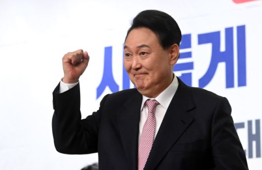 당선이 확실시된 새벽 4시쯤 윤 당선인은 서울 서초동 자택에서 상황실이 마련된 국회도서관으로 향했다. 당원들의 환호를 받으며 등장한 그는 “저도, 국민의힘도, 안철수 국민의당 대표도아닌 위대한 국민의 승리”라고 당선 소감을 밝혔다. 이후 다시 자택으로 이동해 오전 9시쯤에는 문재인 대통령으로부터 축하 전화를 받았다. 10시에는 조 바이든 미국 대통령과도 전화 통화를 했다.