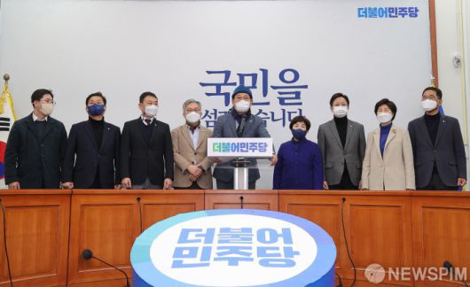 [서울=뉴스핌] 이형석 기자 = 송영길 더불어민주당 대표를 비롯한 지도부가 10일 서울 여의도 국회에서 대선패배에 책임으로 사퇴를 밝히는 기자회견을 하고 있다. 2022.03.10 leehs@newspim.com 저작권자(c) 글로벌리더의 지름길 종합뉴스통신사 뉴스핌(Newspim), 무단 전재-재배포 금지