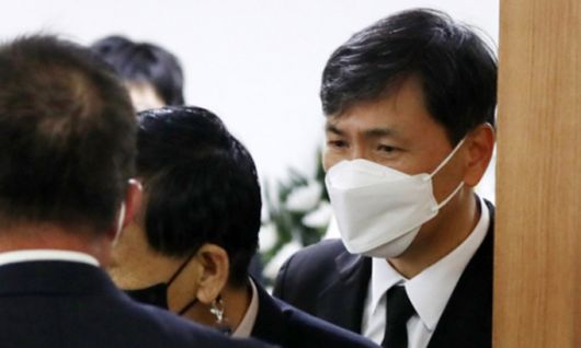 부친상으로 일시 석방된 안희정 전 충남지사(오른쪽)가 9일 오후 서울의 한 장례식장에서 조문객을 맞이하고 있다. 뉴시스 |