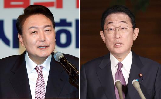 윤석열(왼쪽) 대통령 당선인과 기시다 후미오 일본 총리./연합뉴스 |