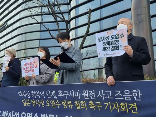 공동행동은 "일본 정부는 사고 발생 11년이 지나도록 방사성 오염토 등을 방치해왔다"면서 "나아가 수백만t에 이르는 오염수를 방류하기로 결정했고, 이제는 우리 정부에 환태평양경제동반자협정(CPTPP) 가입 전제조건으로 후쿠시마산 농·수산물 수입까지 압박하고 있다"고 말했다.