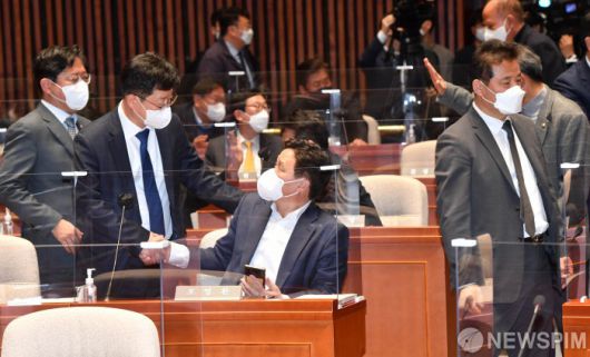 [서울=뉴스핌] 최상수 기자 = 11일 오후 서울 여의도 국회에서 열린 더불어민주당 의원총회에 의원들이 참석하고 있다. 2022.03.11 kilroy023@newspim.com 저작권자(c) 글로벌리더의 지름길 종합뉴스통신사 뉴스핌(Newspim), 무단 전재-재배포 금지