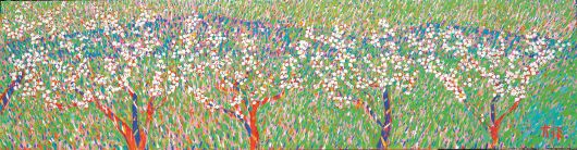 이대원 ‘배꽃’, 2000, 개인소장. 이대원은 새하얀 배꽃이 흐드러지게 피는 봄날의 풍경을 자주 그렸다. 이 작품은 가로 5m가 넘는 말년의 역작이다. /갤러리현대 |