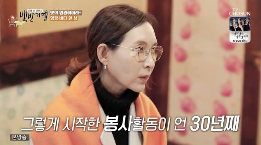 정애리는 “원장님한테 ‘다시 오겠다’고 인사를 하고 나왔다. 그 약속이 마음에 걸렸다. 그렇게 시작한 봉사활동이 이렇게 시간이 갔다”라고 설명했다.