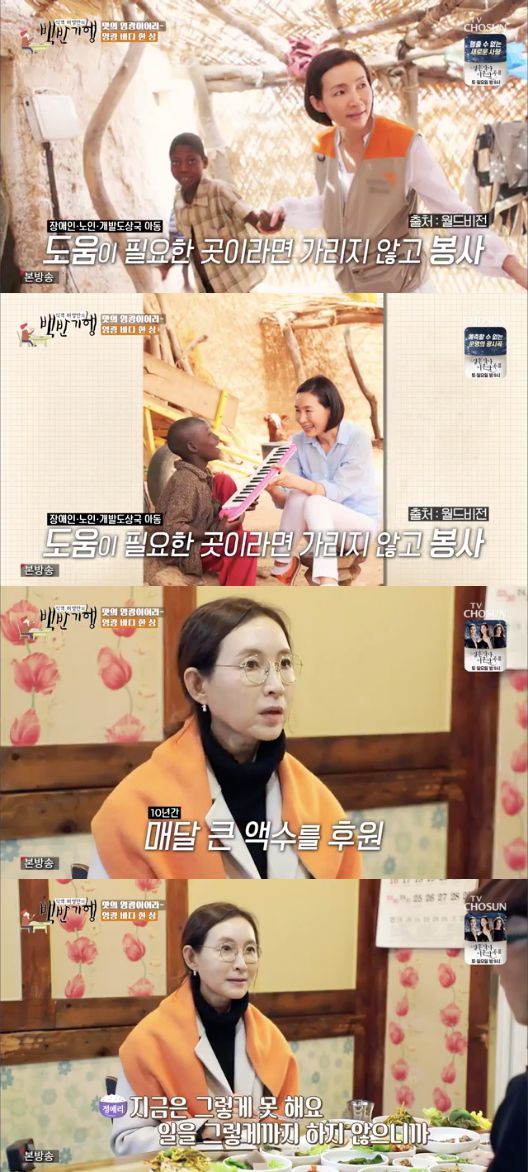 정애리는 “그러면서 장애인도 보고 제 3세계 아이까지 보게 됐다. 그때는 ‘나는 이 아이들의 가장이다. 가장이 아이들을 살린다는 거다’(라고 생각을 했다)”라고 봉사활동을 시작한 계기를 밝혔다.