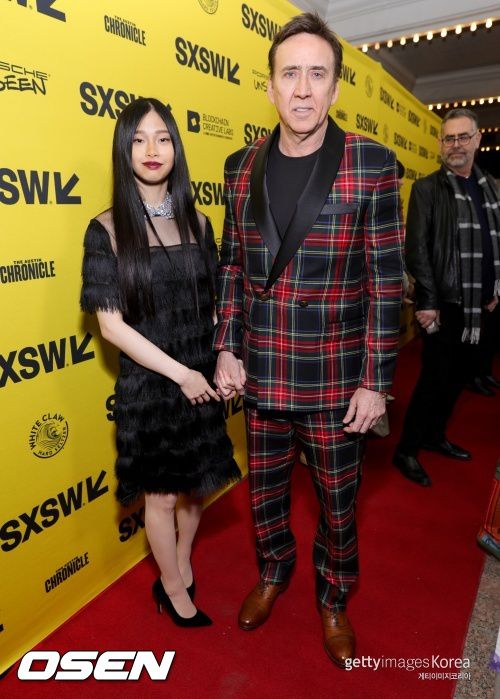 케이지는 레드카펫에서 그의 다섯 번째 아내인 리코의 손을 꼭 잡고 애정을 드러냈다. 케이지는 빨간색 격자무늬 슈트를 입었고 리코는 검은색 프린지 미디 원피스 의상을 완벽하게 소화하며 검은 생머리를 길게 늘어뜨려 눈길을 사로잡았다.