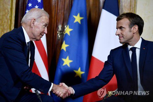 조 바이든 미국 대통령(왼쪽)과 에마뉘엘 마크롱 프랑스 대통령 |