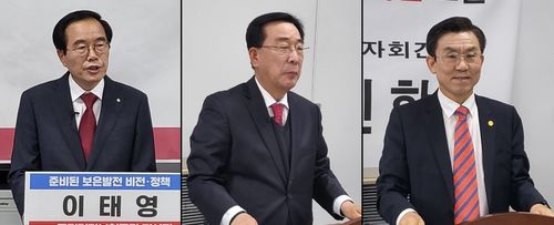 (보은=연합뉴스) 심규석 기자 = 국민의힘 정상혁 군수의 3선 출마 제한으로 무주공산이 된 충북 보은군수 선거를 앞두고 이 당 소속 주자들의 출마선언이 줄을 잇고 있다.
