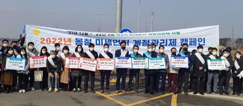 (당진=연합뉴스) 조성민 기자 = 충남도가 미세먼지와 황사가 본격적으로 발생하는 봄철을 맞아 15일 당진시 송산면 철강제철단지 일원에서 봄철 미세먼지 계절관리제 홍보 캠페인을 벌였다.