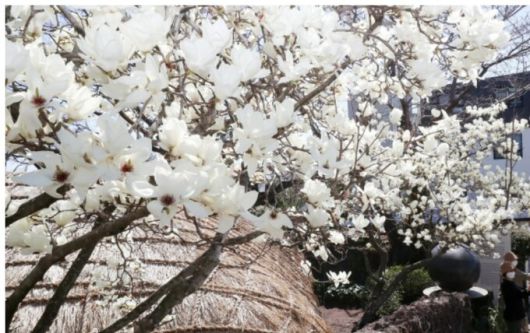 15일 오전 제주 서귀포시 이중섭 거리에 목련이 만개해 완연한 봄 정취를 자아내고 있다. 뉴스1 |