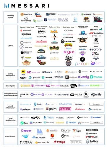 메사리는 이처럼 성장하는 블록체인 게임 생태계를 ▲ 게임 길드 ▲ 블록체인 게임 ▲ 게임 스튜디오 ▲ 게임 개발 인프라 ▲ 마켓플레이스 등 요소로 나눠 분석했다.