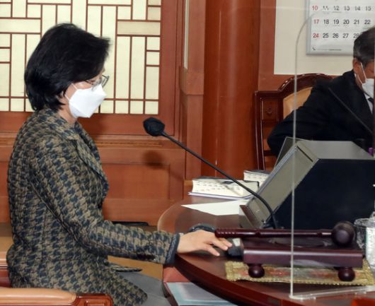 (과천=뉴스1) 황기선 기자 = 노정희 중앙선거관리위원회 위원장이 17일 오전 경기 과천시 중앙선관위에서 열린 ‘중앙선관위 운영회의’에 참석해 있다. 이날 열린 운영회의에서는 김세환 사무총장의 면직 건 처리를 논의할 예정이다. 2022.3.17/뉴스1 |