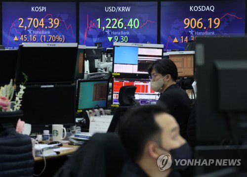 이날 코스피는 전 거래일보다 35.28포인트(1.33%) 오른 2,694.51에 장을 마쳤다.