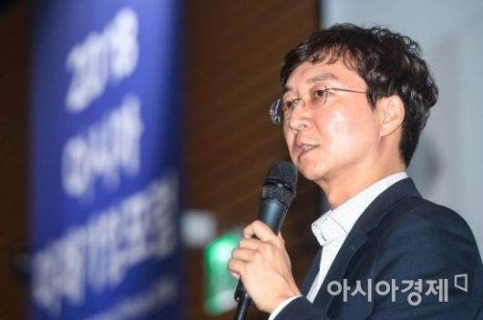 아시아경제 주최로 2018년 4월26일 서울 여의도 전경련회관 그랜드볼룸에서 '100년 기업의 조건 공동의 미래 창조하라'란 주제로 열린 '2018 아시아미래기업포럼'에서 유현준 홍익대학교 건축대학 교수가 '도시는 무엇으로 사는가'란 주제로 특별강연을 하고 있다./강진형 기자aymsdream@ |