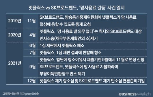 이 사건은 '망 사용료 소송'으로 불린다. 앞서 넷플릭스는 SK브로드밴드 측이 '트래픽이 과도하게 발생해 망에 부담이 되니 사용료를 달라'며 협상을 제기한 데 대해 '우리는 낼 의무가 없다'며 민사소송을 제기했다. 작년 6월 1심 재판부는 피고인 SK브로드밴드의 손을 들어줬으나, 넷플릭스가 항소심을 제기하면서 2심 절차가 시작됐다.