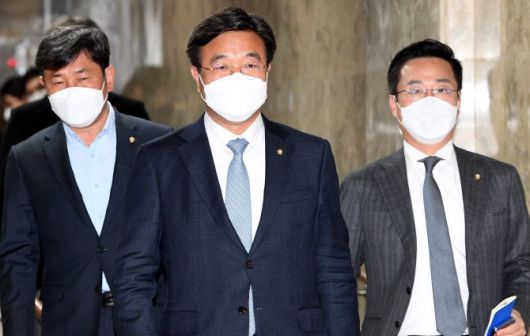 윤호중 더불어민주당 비대위원장이 17일 서울 여의도 국회에서 열린 초선 의원 간담회에 입장하고 있다.(사진=연합뉴스) |