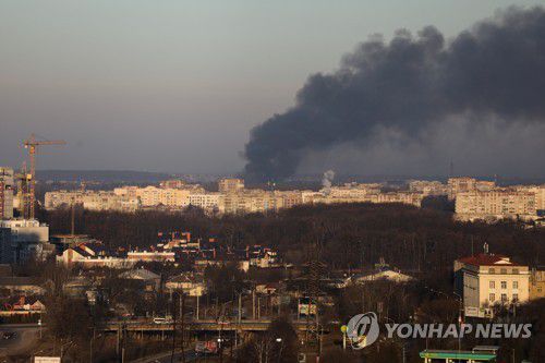 (서울=연합뉴스) 박의래 기자 = 러시아군이 우크라이나 서부 도시 르비우시 공항 인근을 미사일로 폭격했다고 BBC방송과 AFP통신 등이 18일(현지시간) 보도했다.