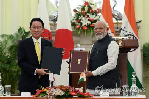 기시다 총리는 앞으로 5년 동안 5조엔(51조원)을 인도에 투자하는 '선물'을 안겼다.