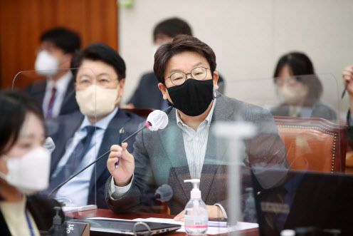 권성동 국민의힘 의원이 지난달 25일 오후 서울 여의도 국회에서 열린 법제사법위원회 현안질의에서 박범계 법무부 장관을 상대로 질의하고 있다.(사진=국회사진취재단) |