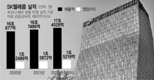 금융정보업체 에프앤가이드에 따르면 SK텔레콤의 올해 매출액과 영업이익 추정치는 각각 약 17조 4000억 원, 1조 5000억 원으로 전년대비 4%와 12% 성장한다. SK텔레콤은 올해 1월 5G 누적 가입자가 1000만 명을 넘어서는 등 통신부분의 성과가 눈에 띈다. 통신부분의 2021년 연간 별도 기준 매출은 전년 대비 3.0% 성장한 12조 1028억 원, 영업이익은 8.9% 증가한 1조 1143억원이다.