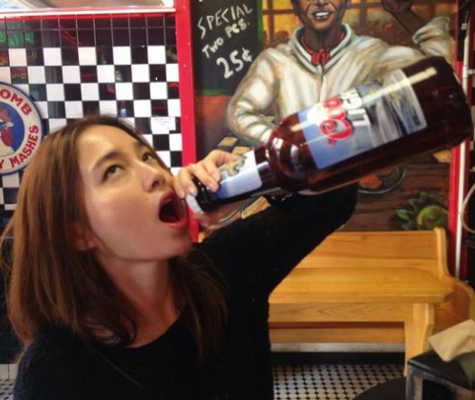 사진 속 이민정은 평소처럼 아름다운 미모를 뽐내다 음식점에서는 병나발을 부는 행동을 취해 웃음을 자아냈다.