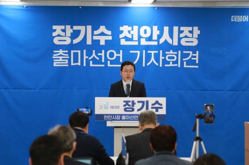 (천안=연합뉴스) 이은중 기자 = 더불어민주당 소속 장기수 전 충남 청소년진흥원장이 21일 천안시장 선거 출마를 선언했다.