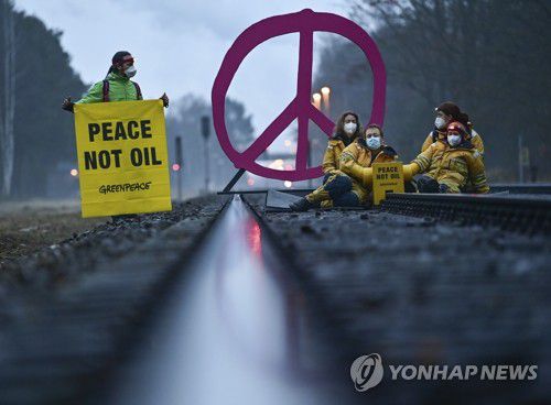 러시아산 석유 수입 금지 요구하며 시위하는 독일 환경단체 |