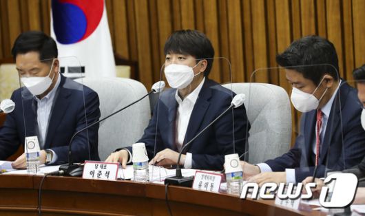(서울=뉴스1) 이동해 기자 = 이준석 국민의힘 대표가 22일 서울 여의도 국회에서 열린 시도당위원장 연석회의에서 모두발언하고 있다. 2022.3.22/뉴스1