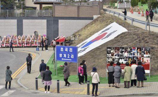 지난달까지만 해도 지지자들이 저택 주변을 둘러보는 정도에 그쳤지만, 어느샌가 저택 앞 언덕에는 세로 7m, 가로 10m의 대형 태극기가 내걸렸다. 또 시민단체가 만든 안내판과 엽서함이 마련되고 지지자들이 보낸 화환 10여 개가 세워졌다. 주말이면 평균 1000여 명이 이곳을 찾는다.
