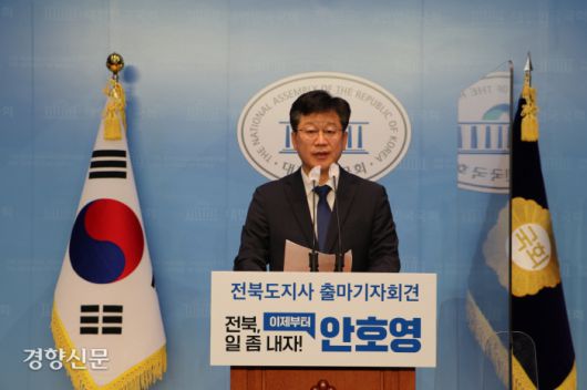 안 의원은 이날 전북도의회에서 기자회견을 열고 “전북은 20년간 위기돌파형 리더십이 아닌 관리형 리더십이 도정을 이끌면서 도민의 삶과 지역발전이 뒤처졌다”며 “위기를 돌파할 리더십을 발휘하는 도지사가 되겠다”고 출사표를 던졌다.