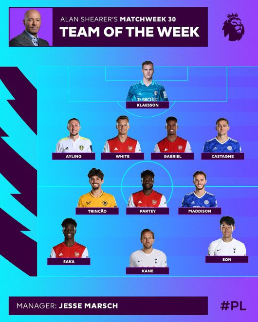 잉글랜드 프리미어리그(PL) 30라운드 베스트 11. (PL 트위터 캡처) |