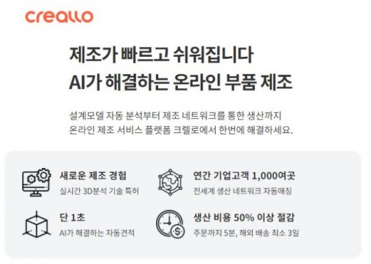 김희중 크렐로 대표는 "공작기계(CNC) 가공, 판금가공, 사출성형 등 생산 기술도 설계분석과 견적산출을 자동화해 제조를 더욱 쉽고 빠르게 진행할 수 있도록 하겠다"고 말했다.