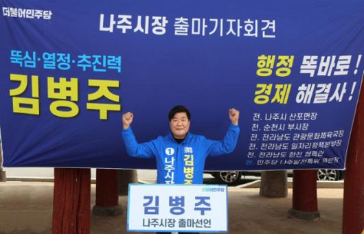 김병주 전 전남도 관광문화체육국장은 나주시장 출마를 공식 선언했다. 민주당 소속인 김 전 국장은 22일 오후 나주 금성관 정수루 야외 공간에서 출마 기자회견을 갖고 "12만 나주시민 한 분이라도 억울하고 원통한 일이 없게 하겠다"고 밝혔다.