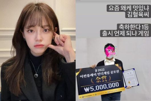 22일 김세정은 자신의 인스타그램 스토리에 “요즘 왜케 멋있냐 김혈육씨. 축하한다. 1등 출시 언제 되냐 게임”이라는 글과 함께 사진 한장을 게재했다.