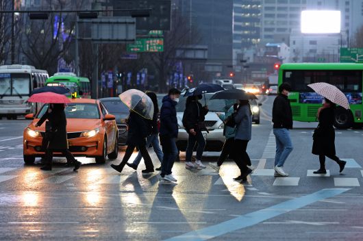 강원 산지에는 적설량 0.1cm 미만의 눈이 흩뿌리겠다. 제주도는 5㎜ 미만의 비나 1㎝ 안팎의 눈이 내리겠다.