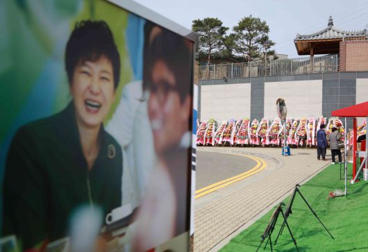 (연합뉴스) 21일 오후 대구 달성군 유가읍 쌍계리 박근혜 전 대통령 사저 주변에 박 전 대통령을 환영하는 사진들이 설치돼 있다. |