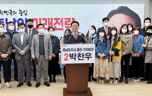 (홍성=연합뉴스) 조성민 기자 = 박찬우 전 국회의원이 23일 충남도지사 출마를 선언했다.