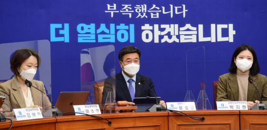 윤호중 더불어민주당 공동비상대책위원장(가운데)이 23일 오전 서울 여의도 국회에서 열린 비상대책위원회 회의에서 발언하고 있다. 공동취재사진 |