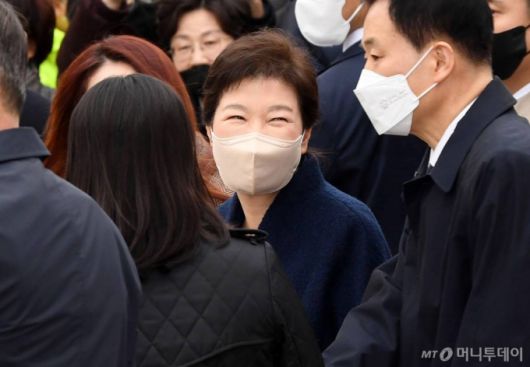 현장에는 보수 성향 유튜버와 지지자들이 모여 박 전 대통령이 등장할 때 박수를 치고 "박근혜", "대통령님 고생하셨어요" 등의 말을 외쳤다.