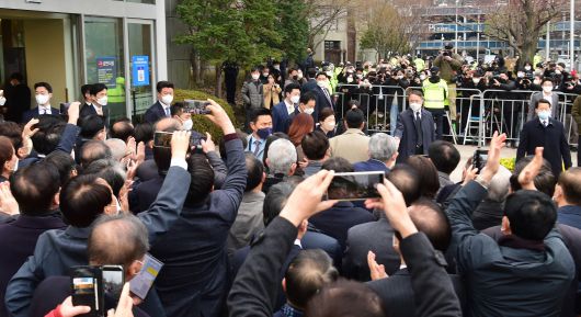 오전 8시 32분쯤 서울 강남구 일원동 삼성서울병원 출입구 앞에 박 전 대통령이 모습들 드러내자 태극기를 손에 든 지지자들 사이에서 “대통령님 수고하셨어요” “고생하셨어요”라는 외침이 터져나왔다. 취재진 60여명과 지지자 40여명, 유튜버 10여명 등이 엉켜 일대가 소란스러웠다. 손에 꽃을 든 사람들도 여럿 보였다.