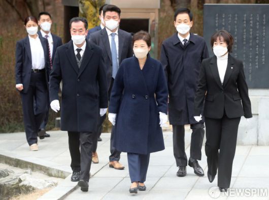 [서울=뉴스핌] 황준선 기자 = 박근혜 전 대통령이 24일 오전 서울 동작구 국립서울현충원에서 부친인 박정희 전 대통령 묘역을 찾아 참배하기 위해 이동하고 있다. 2022.03.24 hwang@newspim.com 저작권자(c) 글로벌리더의 지름길 종합뉴스통신사 뉴스핌(Newspim), 무단 전재-재배포 금지