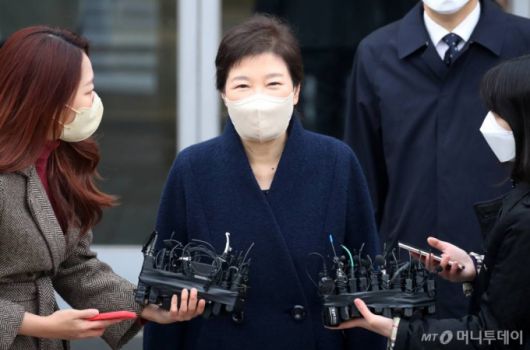 박 전 대통령은 감청색 코트에 미색 마스크를 쓰고 있었다. 흰머리가 보이던 구치소 때와 달리 검게 염색한 올림머리를 한 모습이었다. 지지자들의 응원에 마스크를 쓴 채로 눈웃음을 지어 보였다.
