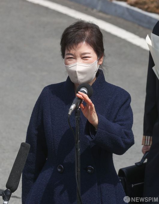 [대구=뉴스핌] 최상수 기자 = 박근혜 전 대통령이 24일 대구 달성군에 위치한 사저 앞에서 특별사면 삼성서울병원 퇴원 등에 대해 소회를 밝히고 있다. 2022.03.24 kilroy023@newspim.com 저작권자(c) 글로벌리더의 지름길 종합뉴스통신사 뉴스핌(Newspim), 무단 전재-재배포 금지