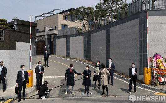 [대구=뉴스핌] 최상수 기자 = 박근혜 전 대통령이 24일 대구 달성군에 위치한 사저 앞에서 특별사면 삼성서울병원 퇴원 등에 대해 소회를 밝히고 있다. 2022.03.24 kilroy023@newspim.com