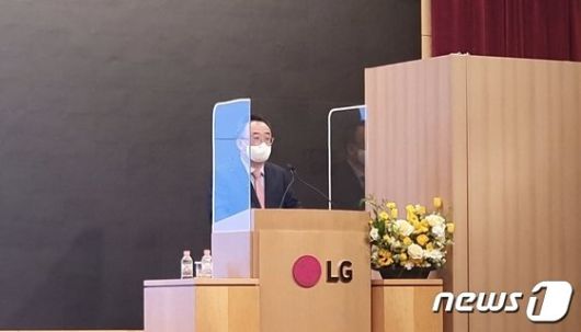 24일 서울 여의도 LG트윈타워에서 열린 '제20기 정기 주주총회'에서 의장인 배두용 LG전자 대표이사가 발언하고 있다. /사진= 뉴스1 |